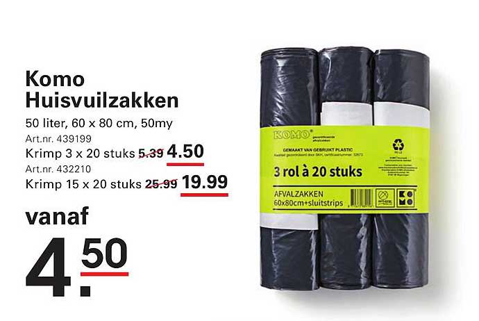 Bekijk nu de Komo Huishoudzakken aanbieding in de Sligro folder. Deze aanbieding is geldig van 07-08-2025 tot en met 25-08-2025.
