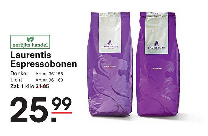 Geniet van een volle en rijke koffie-ervaring met de Laurentis Esprossobonen. Deze zorgvuldig geselecteerde bonen zijn perfect voor de echte koffieliefhebber die op zoek is naar kwaliteit en smaak in elke kop. Met de huidige aanbieding van slechts €25,99 voor een zak van 1 kilo, is dit een kans die je niet wilt missen! Geldig van 5 oktober tot en met 27 oktober 2025, dus zorg ervoor dat je op tijd profiteert.