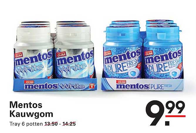 Ben je op zoek naar een heerlijke kauwgom die niet alleen lekker smaakt, maar ook helpt bij een frisse adem? Zoek dan niet verder! Op deze pagina vind je een geweldige aanbieding voor de Mentos Kauwgom. Deze kauwgom is perfect voor onderweg, op school of tijdens een vergadering. Met een scherpe prijs van €9,99 voor een tray van 6 potten, is het een deal die je niet wilt missen.