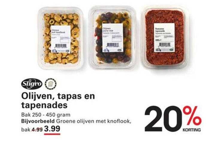 Ben je dol op olijven en tapas? Dan hebben we geweldig nieuws voor je! Bij Sligro vind je nu een fantastische aanbieding op een selectie van heerlijke olijven en tapenades. Deze aanbieding loopt van 27 maart 2025 tot en met 21 april 2025, dus grijp je kans om je voorraad aan te vullen! De olijven zijn perfect voor bij een borrel of als toevoeging aan je gerechten, waardoor ze niet alleen lekker zijn, maar ook een geweldige aanvulling op je keuken maken.