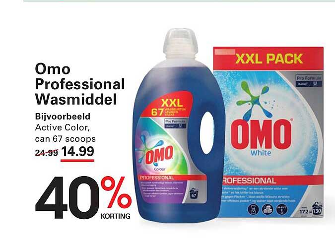 De normale prijs voor Omo Professional Wasmiddel is €24,99, maar met deze aanbieding betaal je slechts €14,99! Dit is niet alleen een geweldige manier om je huishouden te besparen, maar ook een kans om kwaliteit in huis te halen. Vergelijk je besparingen en je zult zien dat dit een aanbieding is die je niet wilt missen.