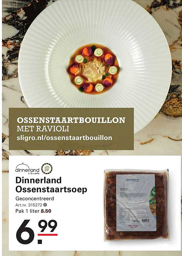 Bekijk nu de OSSENSTAARTBOUILLON MET RAVIOLI aanbieding in de Sligro folder. Deze aanbieding is geldig van 09-10-2025 tot en met 27-10-2025.