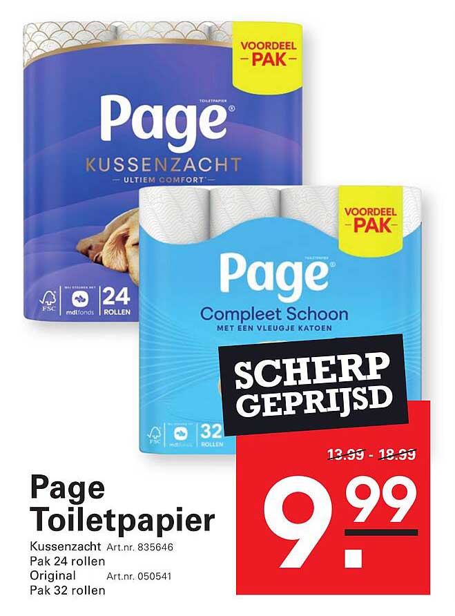 De huidige aanbieding van Page Toiletpapier is verkrijgbaar voor slechts €9,99, normaal geprijsd tussen de €13,99 en €18,99. Dit betekent een aanzienlijke besparing voor jou! Maak gebruik van deze aanbieding om te profiteren van kwalitatief hoogstaand toiletpapier voor een scherpe prijs.