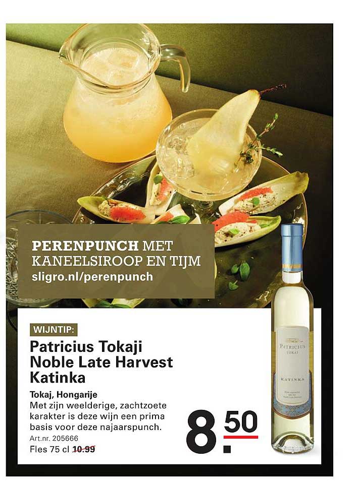 Bekijk nu de Patricius Tokaji Noble Late Harvest Katinka aanbieding in de Sligro folder. Deze aanbieding is geldig van 09-10-2025 tot en met 27-10-2025.
