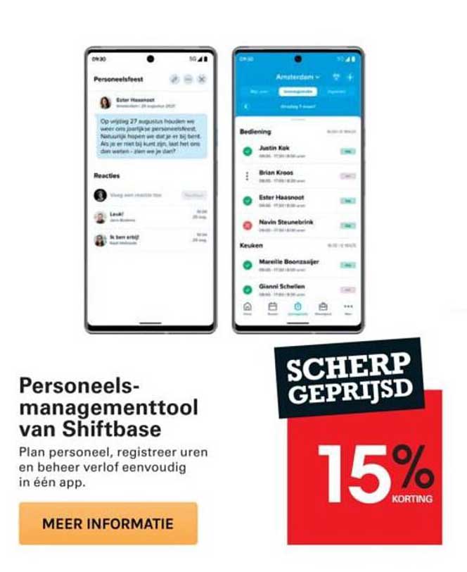 Als je op zoek bent naar een handige manier om je personeel te beheren, dan is deze aanbieding precies wat je nodig hebt. De personeelsmanagementtool van Shiftbase biedt een efficiënte oplossing voor het plannen van personeel, registreren van uren en het beheren van verlof, allemaal binnen één gebruiksvriendelijke app. Dit maakt je werk zoveel eenvoudiger!