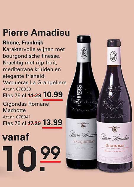 Ontdek de rijke en karaktervolle wijnen van Pierre Amadieu, afkomstig uit de beroemde Rhône-regio in Frankrijk. Deze wijnen zijn niet alleen een genot voor de smaakpapillen, maar bieden ook een uitstekende prijs-kwaliteitverhouding. De aanbieding loopt van 5 oktober tot en met 27 oktober 2025, dus zorg dat je deze kans niet mist!