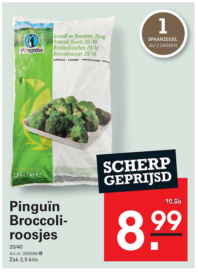Bekijk nu de Pinguïn Broccoli-roosjes 20/40 aanbieding in de Sligro folder. Deze aanbieding is geldig van 30-10-2025 tot en met 17-11-2025.