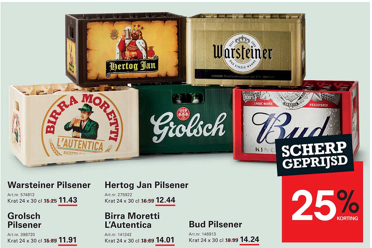 - Warsteiner Pilsener - Art. nr. 574813, krat 24 x 30 cl voor €11,43 (normaal €15,25)