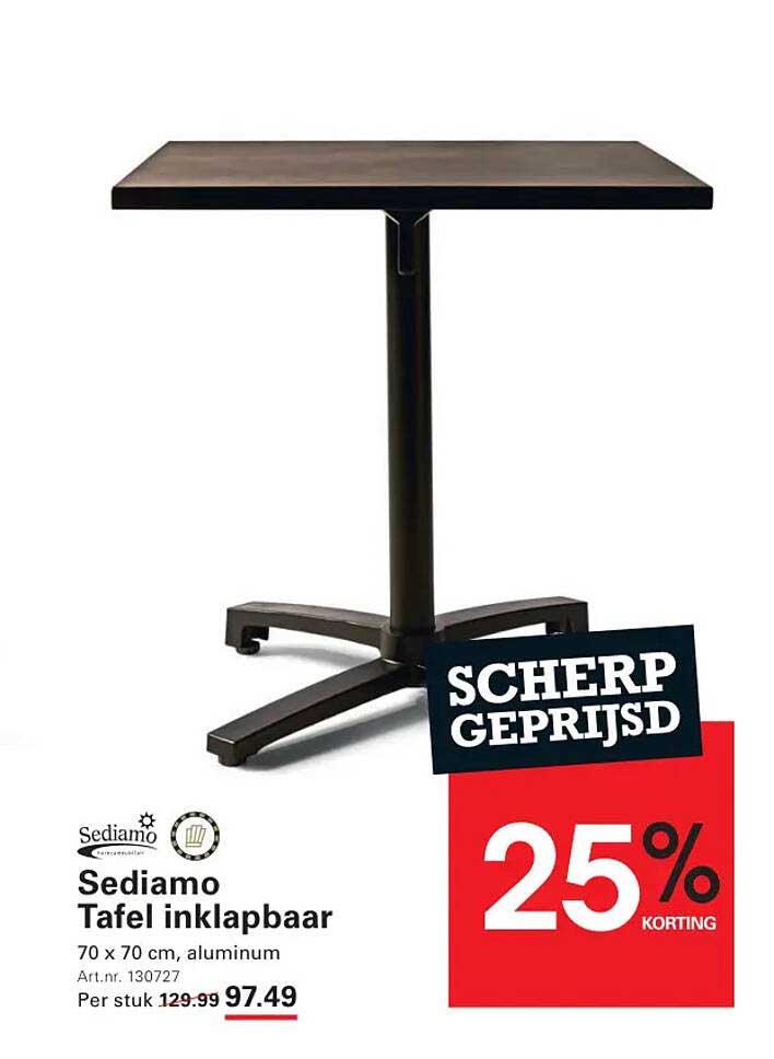 Bekijk nu de Sediamo Tafel inklapbaar aanbieding in de Sligro folder. Deze aanbieding is geldig van 27-03-2025 tot en met 21-04-2025.