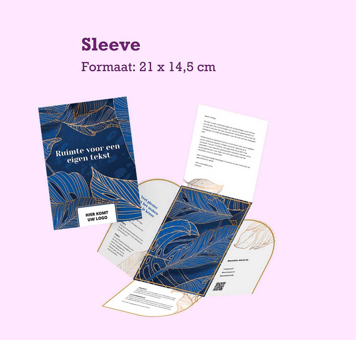 De sleeve is vervaardigd uit op hoogwaardige materialen die zowel duurzaam als stijlvol zijn. Het formaat is perfect om documenten, kaarten of zelfs kleine boeken in op te bergen. Dankzij het handige ontwerp kun je eenvoudig je eigen tekst en logo toevoegen, waardoor het een veelzijdige keuze is voor zowel persoonlijke als zakelijke doeleinden.