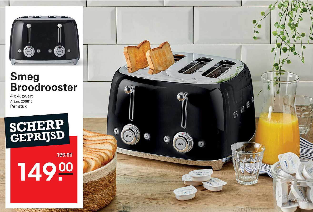 Ben je op zoek naar de perfecte toast? Dan is deze Smeg Broodrooster iets voor jou! Met zijn stijlvolle design en gebruiksvriendelijke functies is dit apparaat een must-have voor elke keuken. De aanbieding, die geldig is van 2025-10-05 tot en met 2025-10-27, maakt het nu nóg aantrekkelijker om deze kwaliteitsbroodrooster aan te schaffen.