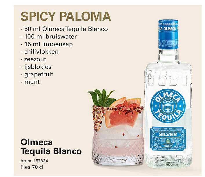 Ontdek de verfrissende en pittige Spicy Paloma, een cocktail die perfect aansluit bij elke gelegenheid. Deze unieke mix van Olmeca Tequila Blanco en andere frisse ingrediënten brengt een explosie van smaken die je niet wilt missen. Perfect voor een zomerfeest of een gezellige avond met vrienden!