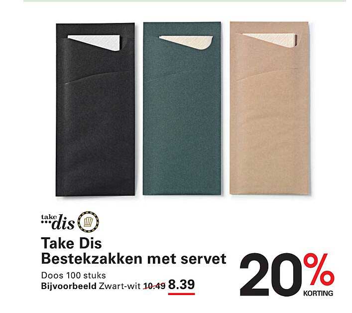 Bekijk nu de Take Dis Beste kzakken met servet aanbieding in de Sligro folder. Deze aanbieding is geldig van 09-10-2025 tot en met 27-10-2025.