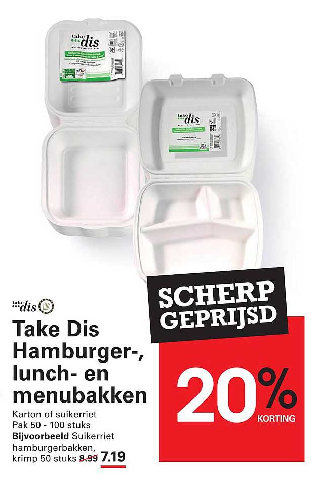 Ben je op zoek naar een handige en duurzame oplossing voor je maaltijden? Kijk dan eens hier naar de Take Dis Hamburger-, lunch- en menubakken. Deze offer biedt jou niet alleen de kwaliteit die je verwacht, maar ook een flinke korting van 20%! Of je nu een barbecue organiseert of een feestje, deze bakken zijn perfect voor elke gelegenheid.