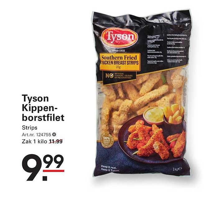 Met een prijs van slechts €9,99 in plaats van de gebruikelijke €11,99, is dit een aanbieding die je niet wilt missen. Dit betekent dat je flink bespaart en tegelijkertijd geniet van kwaliteitsproducten van Tyson. Het is vaak moeilijk om zo'n goede deal te vinden voor kip van deze kwaliteit!