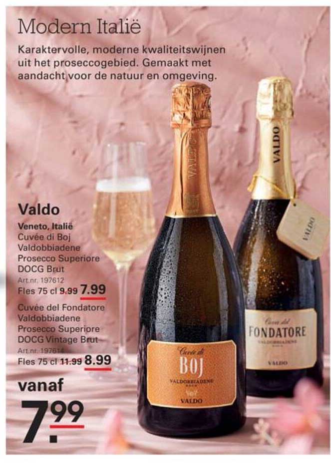 Bekijk nu de Valdo Cuvée di Boj Valdobbiadene Prosecco Superiore DOCG Brut aanbieding in de Sligro folder. Deze aanbieding is geldig van 27-03-2025 tot en met 21-04-2025.