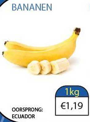 Wil je direct op de hoogte zijn zodra de Bananen in de aanbieding is? Meld je aan voor onze aanbiedingen-alert. Zo krijg je een melding zodra het product tegen een voordelige prijs beschikbaar is.