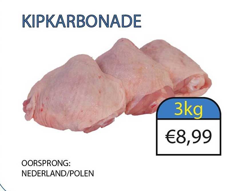 Bekijk de Kipkarbonade aanbieding bij Tanger Markt! Deze fantastische aanbieding is nu beschikbaar in de nieuwste Tanger Markt folder. Profiteer van deze kans en bespaar flink op je aankoop.