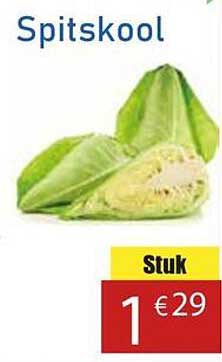Ben je op zoek naar een gezonde en veelzijdige groente? Dan is de spitskool die je hier vindt, absoluut een aanrader! Deze aanbieding is perfect om je maaltijd een frisse en knapperige touch te geven. Of je nu een salade, roerbakgerecht of stamppot maakt, spitskool past erbij. Deze aanbieding is geldig van 2025-07-03 tot en met 2025-07-05, dus mis het niet!