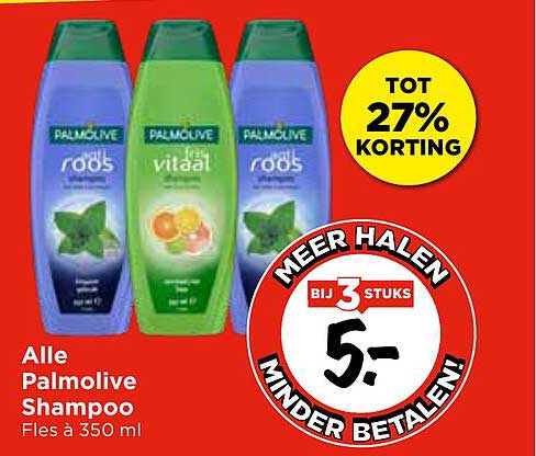 Ontdek de geweldige Alle Palmolive Shampoo aanbieding in de nieuwste Vomar folder. Naast deze aanbieding vind je nog veel meer aantrekkelijke kortingen. Je kunt de Alle Palmolive Shampoo eenvoudig online bestellen via de Vomar website of kopen in een winkel bij jou in de buurt.