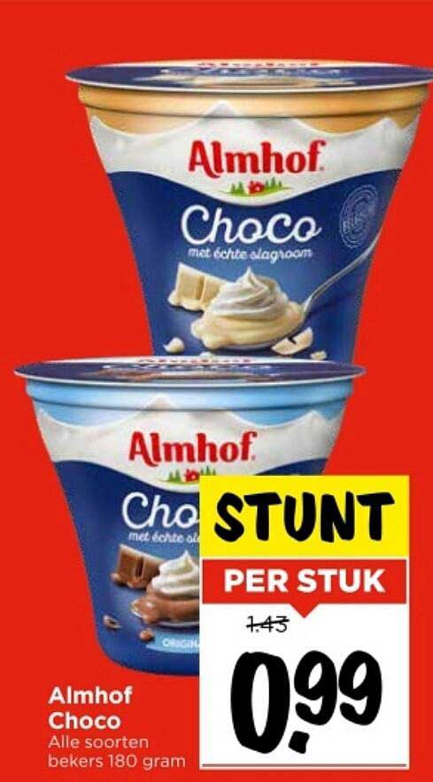 Bekijk de Almhof Choco aanbieding bij Vomar! Deze fantastische aanbieding is nu beschikbaar in de nieuwste Vomar folder. Profiteer van deze kans en bespaar flink op je aankoop.