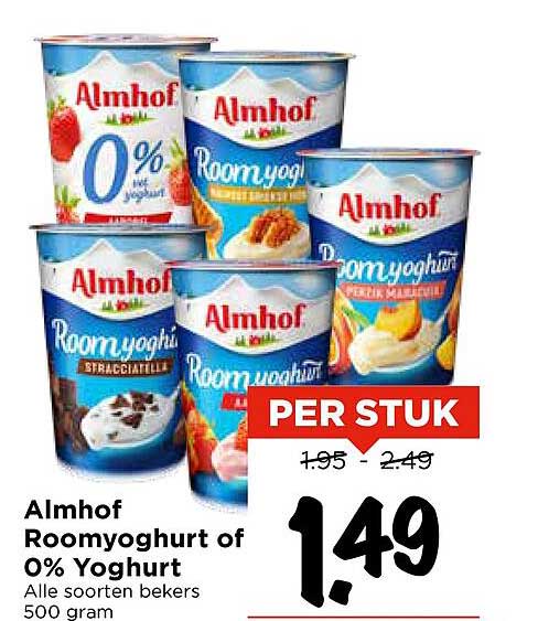 Bekijk nu de Almhof Roomyoghurt of 0% Yoghurt aanbieding in de Vomar folder. Deze aanbieding is geldig van 30-10-2025 tot en met 01-11-2025.