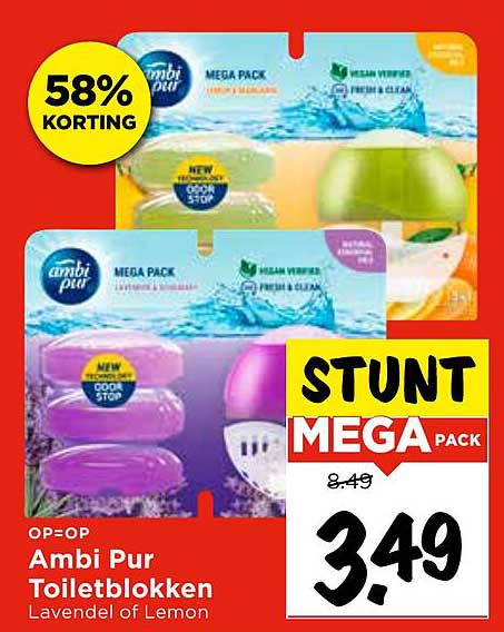 Ben je op zoek naar een frisse geur in je toilet? Kijk dan niet verder! Deze week vind je bij Vomar de Ambi Pur Toiletblokken, nu met een geweldige korting van 58%. De varianten Lavendel en Lemon zorgen voor een langdurige frisse geur en maken het toilet een stuk aangenamer.