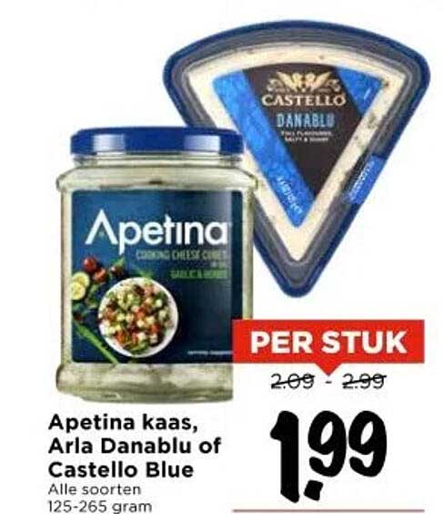 Bekijk nu de Apetina kaas, Arla Danablo of Castello Blue aanbieding in de Vomar folder. Deze aanbieding is geldig van 25-09-2025 tot en met 27-09-2025.