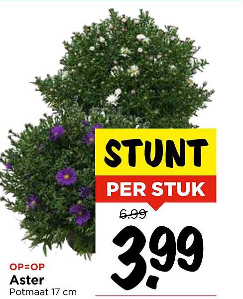 Bekijk de Aster aanbieding bij Vomar! Deze fantastische aanbieding is nu beschikbaar in de nieuwste Vomar folder. Profiteer van deze kans en bespaar flink op je aankoop.