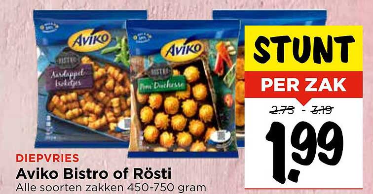 Bekijk nu de Aviko Bistro of Rösti aanbieding in de Vomar folder. Deze aanbieding is geldig van 13-04-2025 tot en met 19-04-2025.