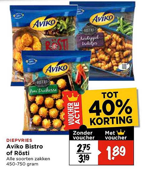 Bekijk nu de Aviko Bistro of Rösti aanbieding in de Vomar folder. Deze aanbieding is geldig van 04-06-2025 tot en met 07-06-2025.