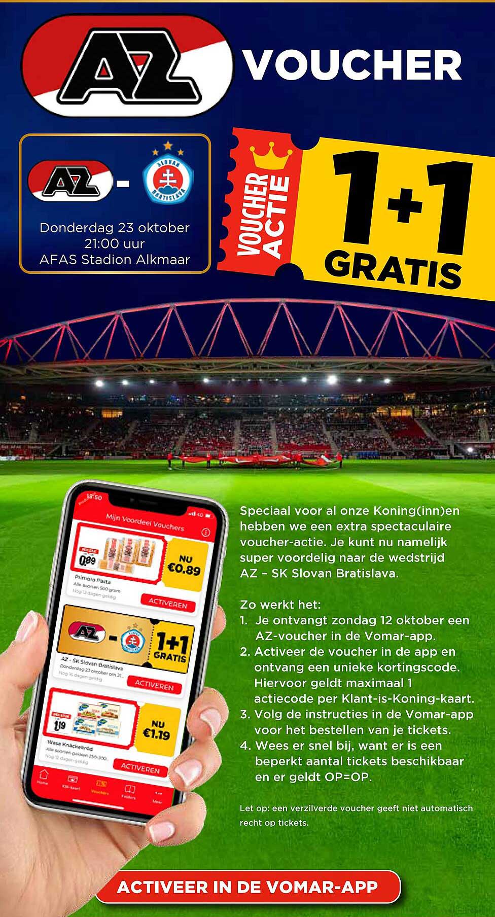 Bekijk nu de AZ - SK Slovan Bratislava 1+1 gratis! aanbieding in de Vomar folder. Deze aanbieding is geldig van 16-10-2025 tot en met 18-10-2025.