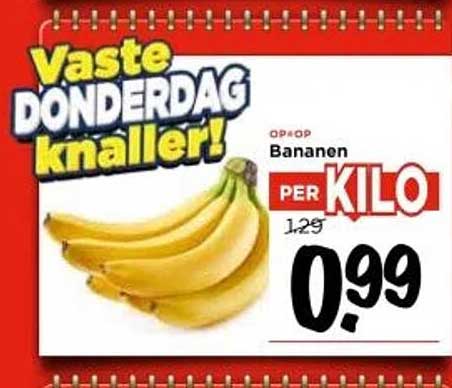 Normaal gesproken kost een kilo bananen €1,29, maar dankzij deze geweldige aanbieding betaal je slechts €0,99. Dat is een besparing van €0,30 per kilo! Dit maakt het niet alleen een slimme keuze, maar ook een voordelige manier om gezonder te eten.