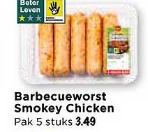De Barbecueworst Smokey Chicken is gemaakt van zorgvuldig geselecteerde ingrediënten en valt onder het ‘Beter Leven’-label, wat garant staat voor betere dierenwelzijnsnormen. Met een verpakking van vijf stuks heb je genoeg om het hele gezin of al je vrienden te voeden. De worstjes zijn perfect gekruid en klaar om gegrild of gebakken te worden.