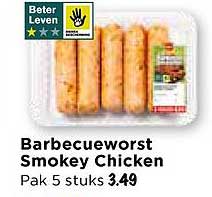 Ben jij een fan van heerlijk vlees dat perfect is voor op de barbecue? Dan is deze aanbieding zeker iets voor jou! De Barbecuworst Smokey Chicken is ideaal voor een gezellige zomerse BBQ met vrienden en familie. Mals, vol van smaak en met een rokerige twist, deze worstjes zullen zeker in de smaak vallen. Bovendien zijn ze afkomstig van 'Beter Leven', wat betekent dat je ook nog eens bijdraagt aan een beter dierenwelzijn.