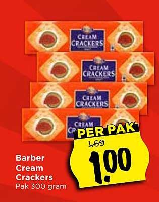 Ontdek de geweldige Barber Cream Crackers aanbieding in de nieuwste Vomar folder. Naast deze aanbieding vind je nog veel meer aantrekkelijke kortingen. Je kunt de Barber Cream Crackers eenvoudig online bestellen via de Vomar website of kopen in een winkel bij jou in de buurt.
