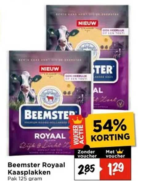 Normaal gesproken betaal je €2,85 voor dit pakje Beemster kaasplakken, maar met deze aanbieding kost het je slechts €1,29! Dit is een geweldige kans om van een kwaliteitsproduct te genieten, zonder je portemonnee te verlichten. Een aanbieding waar je wel een keer van moet profiteren!