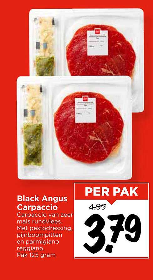 Bekijk nu de Black Angus Carpaccio aanbieding in de Vomar folder. Deze aanbieding is geldig van 18-05-2025 tot en met 24-05-2025.