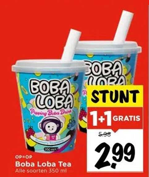 Ben je op zoek naar een verfrissende traktatie? Dan is de Boba Loba Tea precies wat je nodig hebt! Deze populaire drinktrend is niet alleen heerlijk, maar ook een feest voor het oog. Met de aanbieding van 1+1 gratis heb je genoeg om te delen, of om gewoon zelf van te genieten. De aanbieding is geldig van 23 oktober tot en met 25 oktober 2025, dus mis het niet!