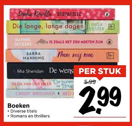 Normaal gesproken kosten deze boeken €5,99 per stuk, maar tijdens deze aanbieding kun je ze nu voor slechts €2,99 per stuk kopen! Dit betekent dat je niet alleen geld bespaart, maar ook de kans krijgt om meerdere boeken te kopen zonder je budget te overschrijden.