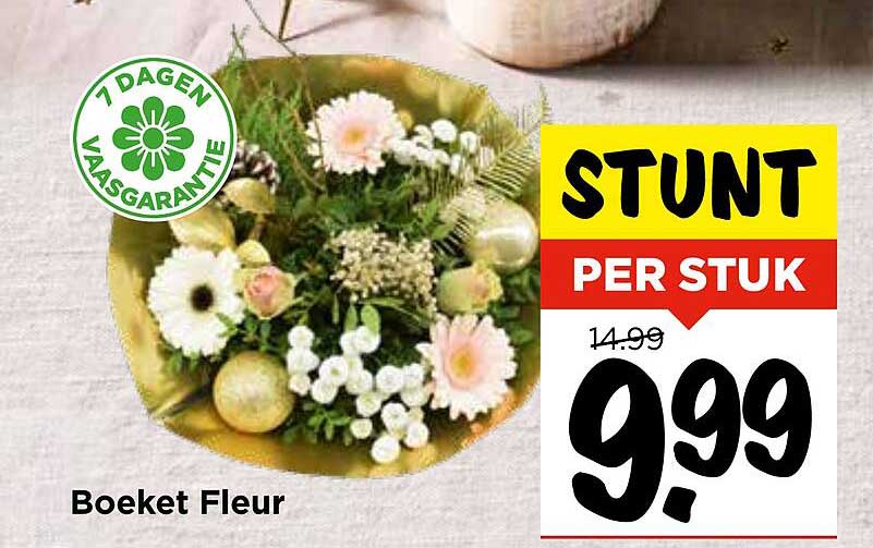 Bekijk de Boeket Fleur aanbieding bij Vomar! Deze fantastische aanbieding is nu beschikbaar in de nieuwste Vomar folder. Profiteer van deze kans en bespaar flink op je aankoop.
