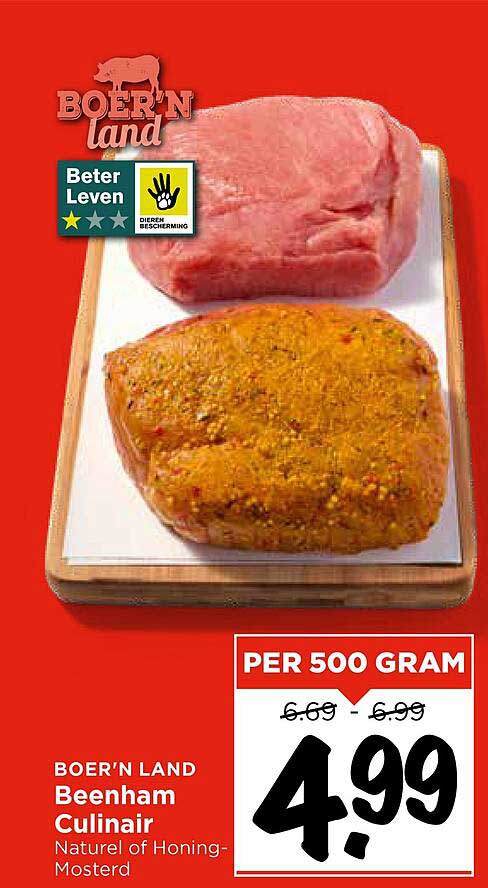 Bekijk nu de BOER'N LAND Beenham Culinaire Naturel of Honing-Mosterd aanbieding in de Vomar folder. Deze aanbieding is geldig van 30-07-2025 tot en met 02-08-2025.