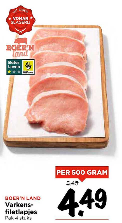 Bekijk nu de BOER’N LAND Varkensfiletlapjes Pak 4 stuks aanbieding in de Vomar folder. Deze aanbieding is geldig van 23-07-2025 tot en met 26-07-2025.