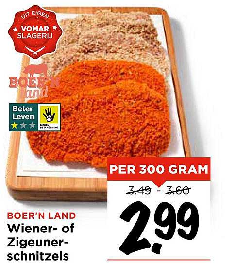 Bekijk nu de BOER'N LAND Wiener- of Zigeunerschnitzels aanbieding in de Vomar folder. Deze aanbieding is geldig van 11-06-2025 tot en met 14-06-2025.
