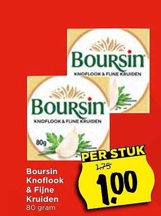Bekijk de Boursin Knoflook & Fijne Kruiden aanbieding bij Vomar! Deze fantastische aanbieding is nu beschikbaar in de nieuwste Vomar folder. Profiteer van deze kans en bespaar flink op je aankoop.