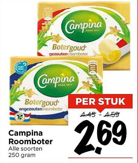 Bekijk nu de Campina Roomboter aanbieding in de Vomar folder. Deze aanbieding is geldig van 02-07-2025 tot en met 05-07-2025.