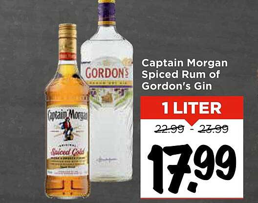 Ben je op zoek naar de perfecte drank voor jouw feest of een gezellige avond thuis? Kijk dan niet verder! Op deze pagina vind je een fantastische aanbieding voor Captain Morgan Spiced Rum of Gordon's Gin. Deze populaire dranken zijn nu verkrijgbaar voor een aantrekkelijke prijs, zodat je je volgende feestje in stijl kunt vieren.