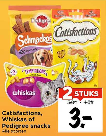 Bekijk nu de Catifications, Whiskas of Pedigree snacks aanbieding in de Vomar folder. Deze aanbieding is geldig van 02-10-2025 tot en met 04-10-2025.