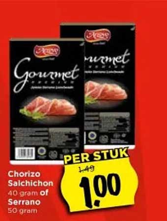 Bekijk de Chorizo Salchichon aanbieding bij Vomar! Deze fantastische aanbieding is nu beschikbaar in de nieuwste Vomar folder. Profiteer van deze kans en bespaar flink op je aankoop.