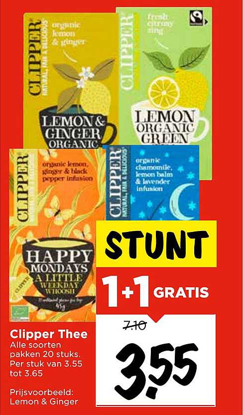 Als je een theeliefhebber bent, dan is deze aanbieding echt iets voor jou! Bij Vomar vind je nu de Clipper Thee in diverse smaken, ideaal voor elke gelegenheid. Deze aanbieding is geldig van 12 oktober tot en met 18 oktober 2025. Voor de prijs van slechts €3,55 per stuk, krijg je er een gratis bij! Dit is de perfecte kans om je thee-voorraad aan te vullen met biologische en Fairtrade-theesoorten.